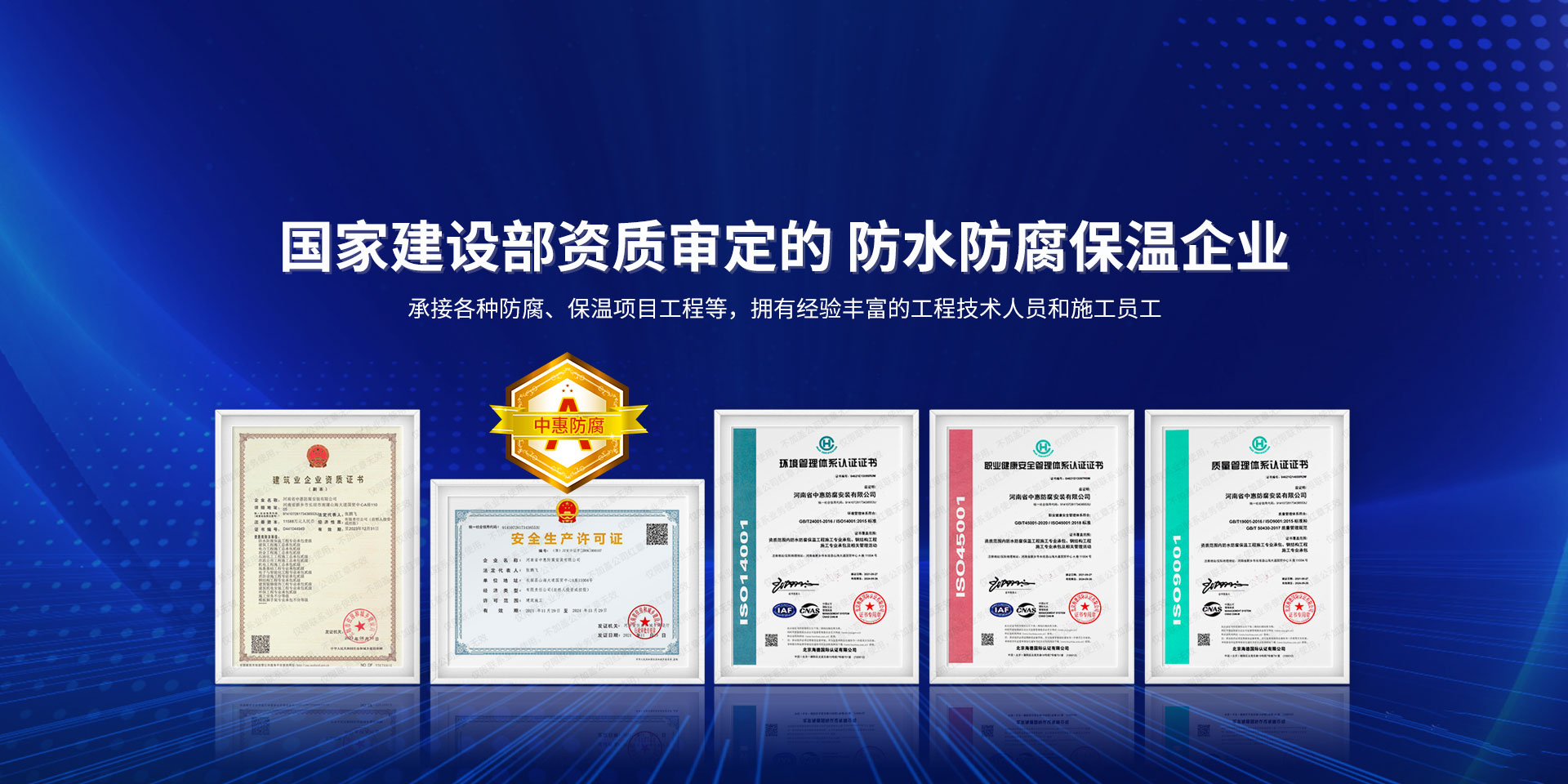 公司經營范圍:防水防腐保溫工程;消防設施工程;建筑裝修裝飾工程;建筑機電安裝工程;電力工程;建筑工程;石油化工工程;工業清洗工程;油罐清洗工程;鋼結構工程;環保工程;模板腳手架工程;電纜防火封堵、防污閃噴涂、外墻外保溫工程;各類施工勞務作業;設備維修、船舶鉚焊、涂裝;電力工程材料、建材、防水材料、防火材料、防腐保溫材料銷售,并相繼通過了GB/T19001-2008idtISO9001:2008GB/T50430-2007質量管理體系認證證書。GB/T24001-2004idtISO14001:2004環境管理體系認證證書。GB/T28001-2011idtOHSAS18001:2007職業健康安全管理體系認證證書。公司是中國防腐蝕于防護協會、中國施工企業管理協會、電力協會和中國鋼結構防水協會會員單位。 公司的經營業務涵蓋了石油、化工、電力、冶金、煤炭、船舶、國防、燃氣、水利、環保、交通運輸、航空及國防軍工和輕紡市政等行業的防腐保溫絕熱設備。鋼結構安裝、防火、防水、金屬噴鍍、聚脲噴繪、陰極保護、防滲透堵漏、玻璃鋼及各種磚版材料襯里、橡膠襯里、煙氣硫和耐酸溶劑腐蝕等工程施工。公司連續十年榮獲“省市先進施工企業”“安全生產先進單位”“重合同,守信用企業”和“AA***資質企業”的稱號。2000年被命名為市級文明單位,2002年被國家工商行政管理局命名為“重合同,守信用的企業”、被中國工業防腐蝕技術協會命名為“防腐蝕企業,能源節約及環境保護領域有豐富的經驗和***的業績。工程一次交驗合格率100%。其中攀枝花鋼鐵公司煉鐵廠四號高爐及熱風爐防腐工程、上海寶鋼公司煤氣柜防腐工程、撫順石油一廠裝置防腐項目、齊魯石化公司稀烴廠高塔防腐工程、吉林化學工業公司煉油廠油罐防腐工程、天津石化熱電廠六號爐頂棚聯絡管保溫工程、大慶油田(太倉)力神泵業工程、中國化學工程第十一建設工程、中原油田勘探局工程、中國石化銷售有限公司華北分部、魯皖輸油管道工程、貴州開磷息烽合成氨工程、陜西黃陵煤化工程、中國石油天然氣西部管道塔里木輸油工程、邯鋼集團邯寶鋼鐵公司煉鐵工程、德州供電工程、吉寶(南通)船廠工程,偃師華潤熱力工程、鄭州熱力總公司。 河南省中惠防腐安裝有限公司愿以豐富的施工經驗,***的技術,***的設備,***的管理,***的服務,竭誠為國內外廣大的用戶提供***滿意、******的工程作品。 我公司愿與國內外同仁一道,團結協作,共同推進防腐蝕行業發展! 公司地址:河南省長垣縣建設路北段360號 固定電話:0373-8866488 郵編:453400 網址:http://www_zhff_com_cn.jialaipinpu.com